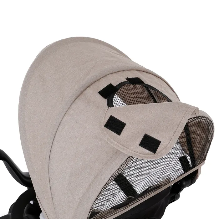- גגון מתכוונן רחב ונוח להגנה מפני השמש, הכולל חלון הצצה דרכו ניתן לראות את הפעוט, הגגון ניתן להסרה בעת הצורך