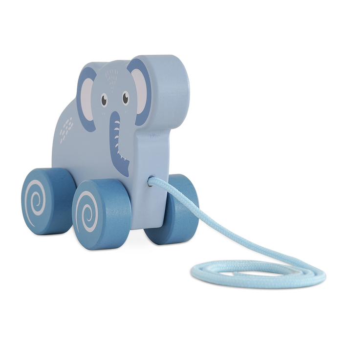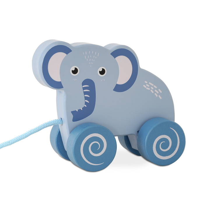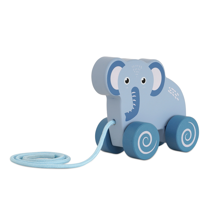 צעצוע משיכה בצורת פיל לפעוטות, המעודד זחילה וכאשר הפעוט לומד ללכת הוא יכול למשוך את הצעצוע אחריו