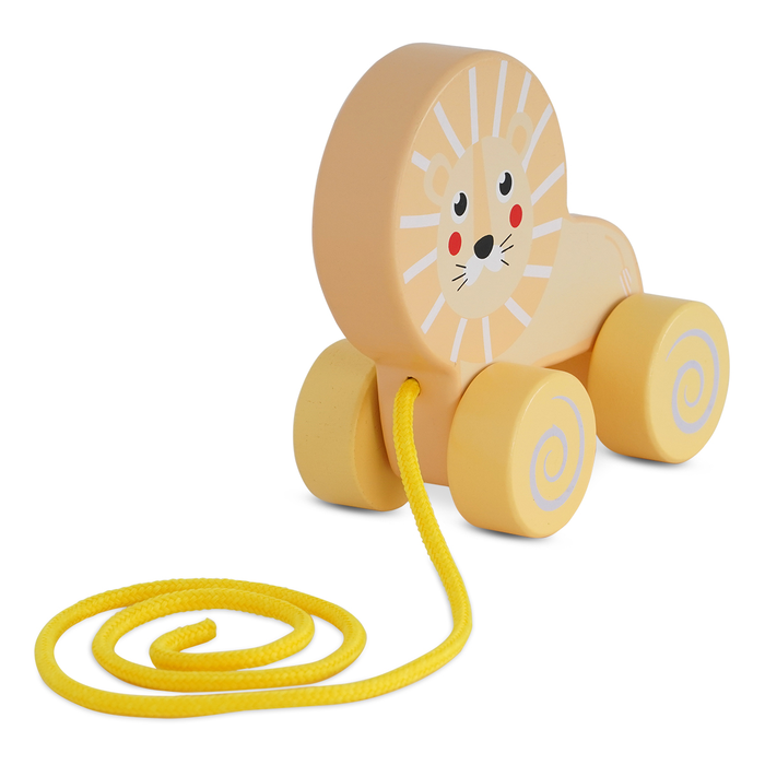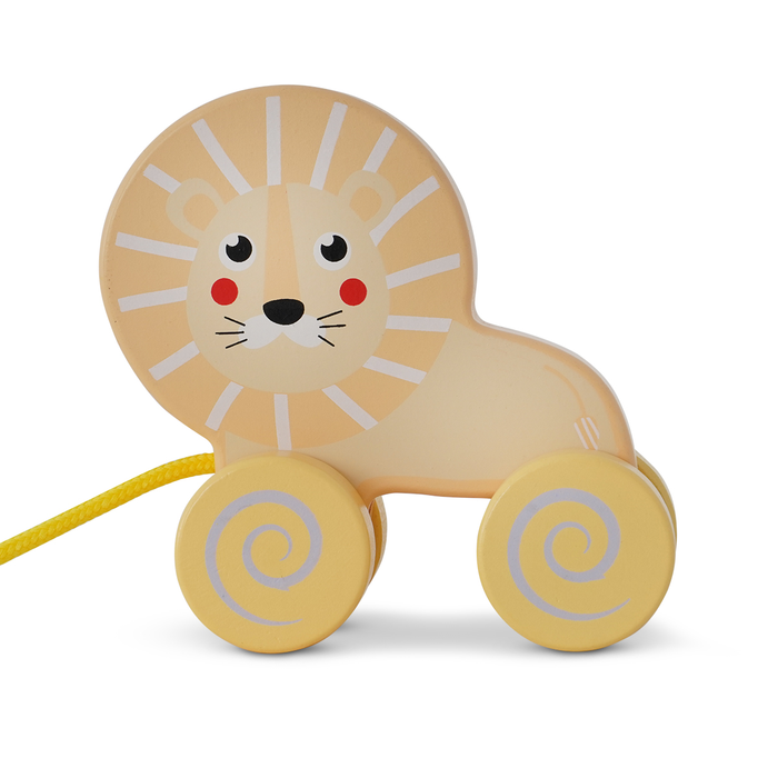 צעצוע משיכה בצורת אריה לפעוטות, המעודד זחילה וכאשר הפעוט לומד ללכת הוא יכול למשוך את הצעצוע אחריו