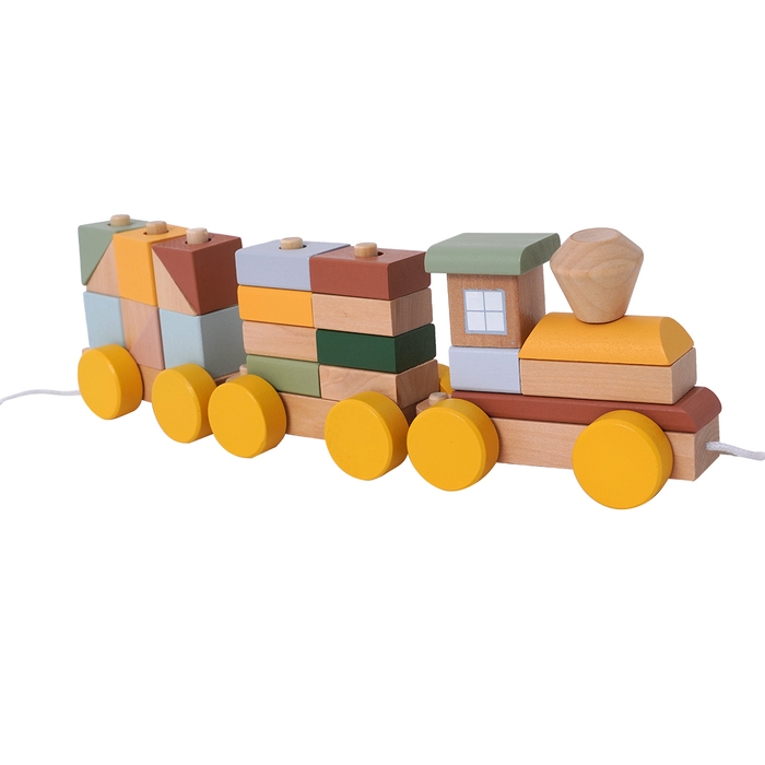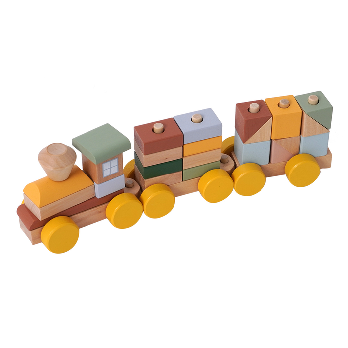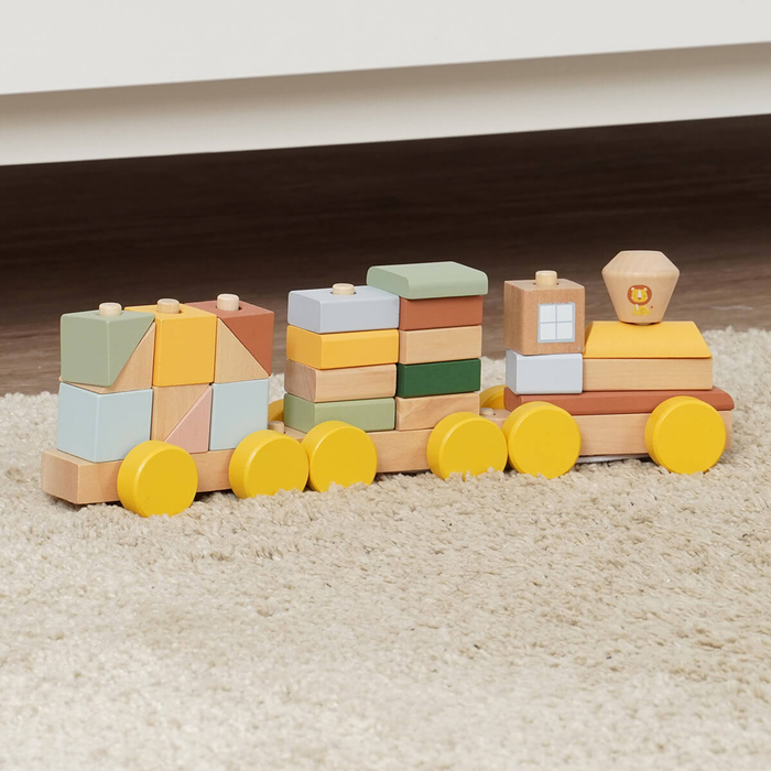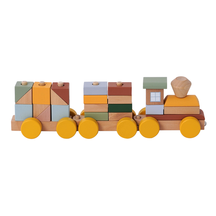 - מאפשר לפעוט לערום ולהשחיל קוביות ולבנים על גבי הקרונות תוך פיתוח מיומנויות התפתחותיות דרך משחק