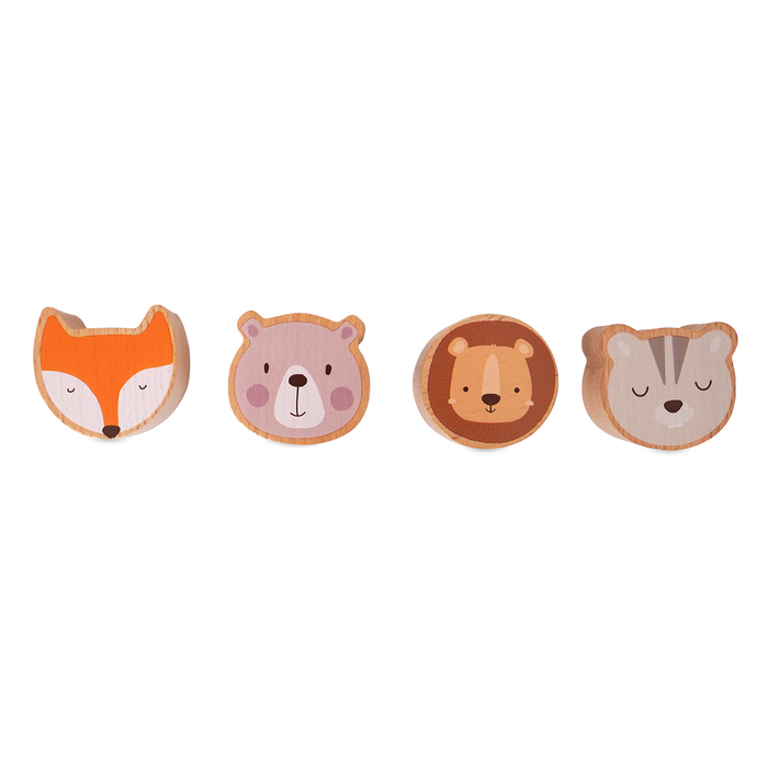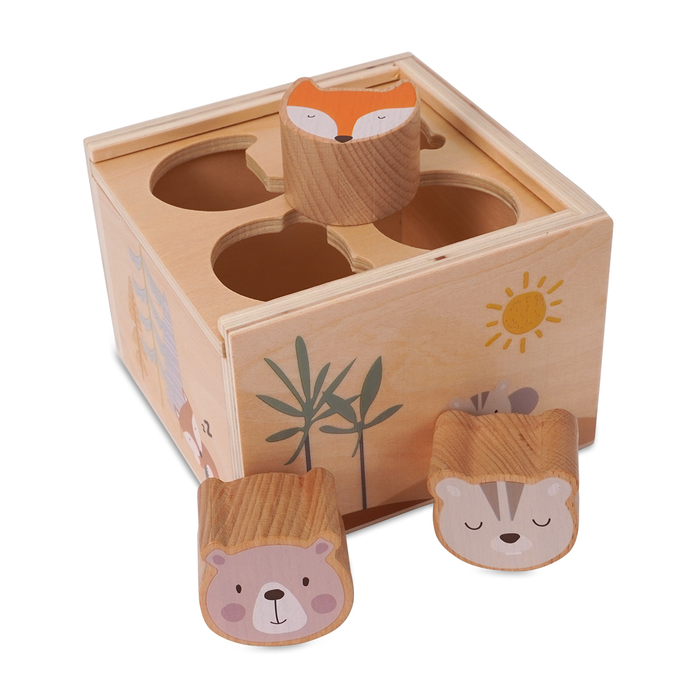 - הצעצוע כולל: קוביית מיון מעץ, 4 צורות מעץ אריה, שועל, סנאי, דוב