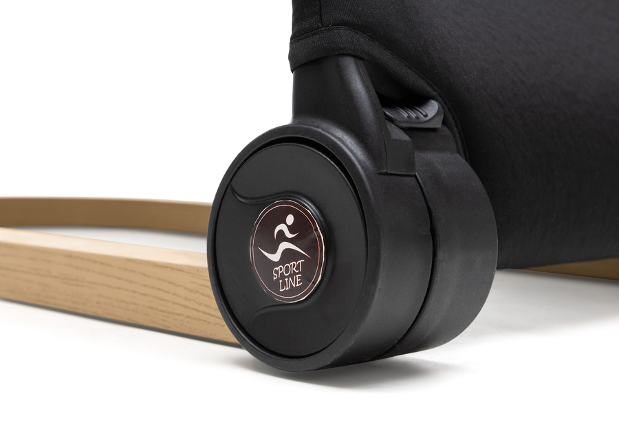 טרמפולינה Primo בעיצוב מודרני ונקי, הכולל מסגרת דמוי עץ/שחור קלת משקל ויציבה מאד.