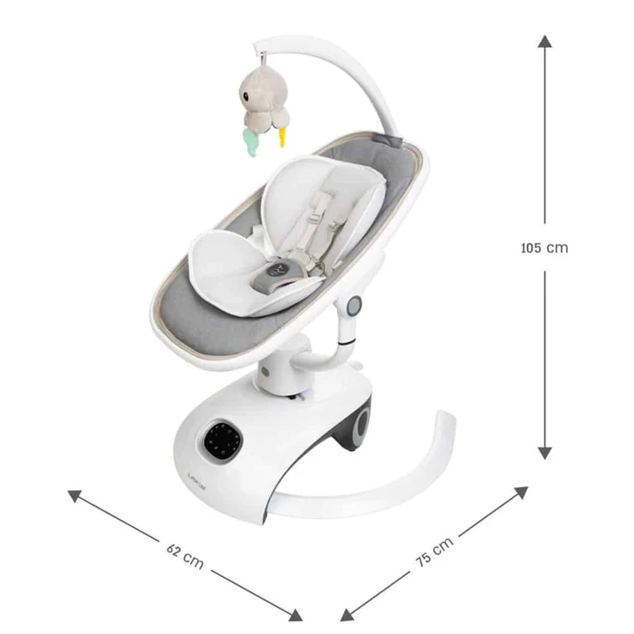 לנדנדה 6 מצבי נדנוד עם 5 מהירויות משתנות ומגוון צלילים מובנים.