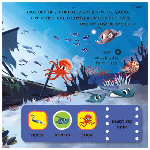 בספר זה, הילדים נהנים לא רק מצבעוניות מושכת עיניים והפעלות מוטוריות, אלא גם מפעילים את יכולות החיפוש, עונים על שאלות ולומדים עובדות מעניינות על חיות הים.