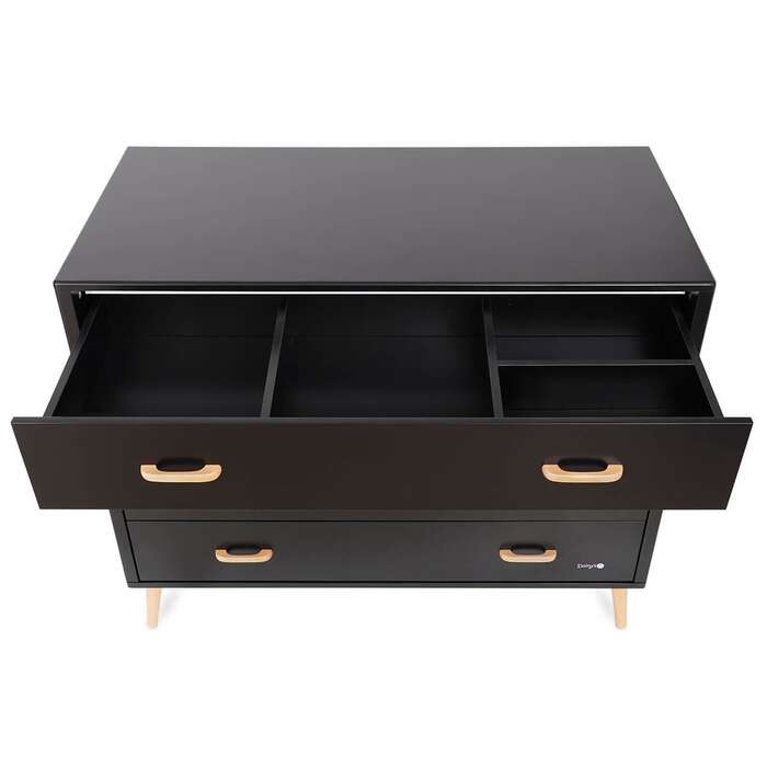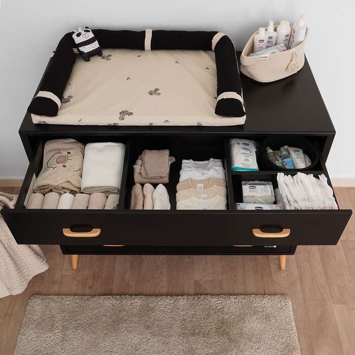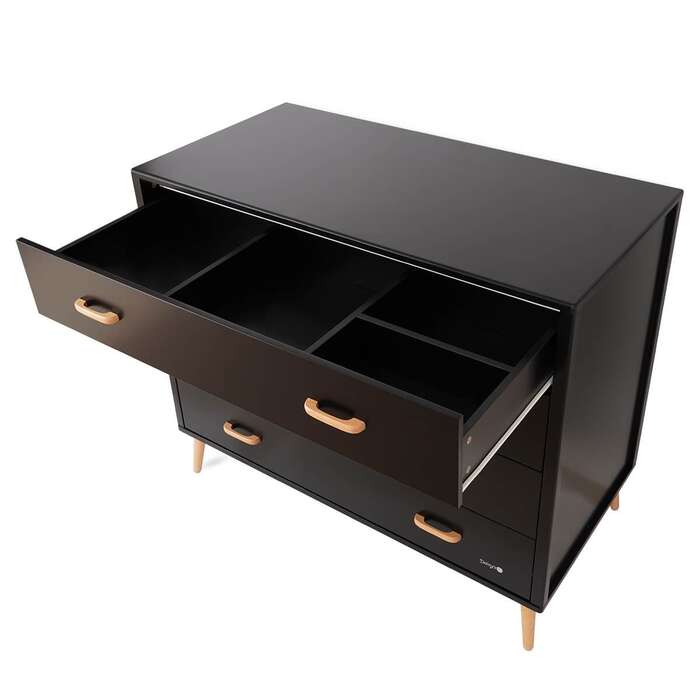 לשידת אליסון ארבע מגירות ולכל מגירה שתי ידיות מעץ. למגירה העליונה חלוקה פנימית- המגירה מחולקת לארבעה חלקים וע”י כך מציעה ניצול מקסימלי, שימוש אופטימלי ונגישות מלאה לכל פריט (מומלץ לאחסן במגירה זו את הפריטים שבהם נעשה שימוש רב יותר כמו: חיתולים, מגבונים, מוצצים, בגדים וכו).