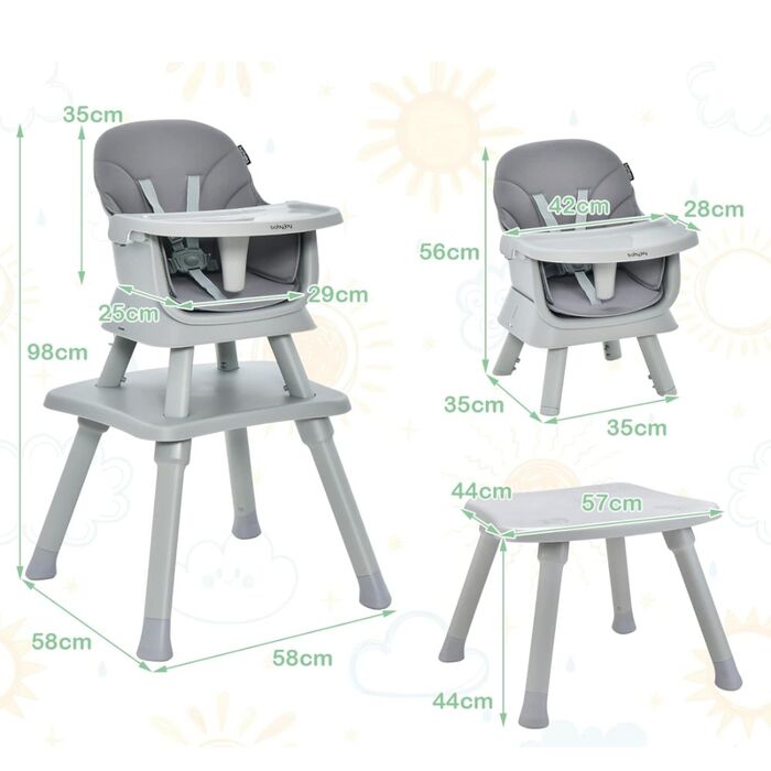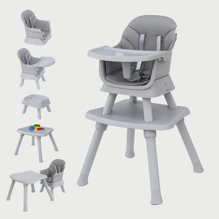 כיסא אוכל 6 ב 1 הופך למושב הגבהה לאוכל, שרפרף, כיסא אוכל קטן, שולחן עבודה, שולחן לגו ועוד…