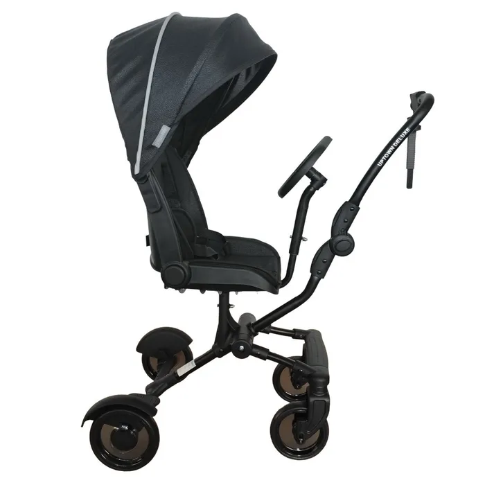 טרמפיסט לפעוט המתחבר לצד העגלה ולא מפריע להורה, מושב מרופד, ידית אחיזה דמויית הגה, 4 גלגלים ליציבות מירבית.