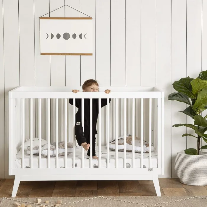 מיטת תינוק דגם ריי גדולה יותר, מעוצבת בקווים נקיים וישרים. עשויה עץ בוק מלא עמיד וחזק עם אישור תקן ו אישור בינלאומי Greenguard