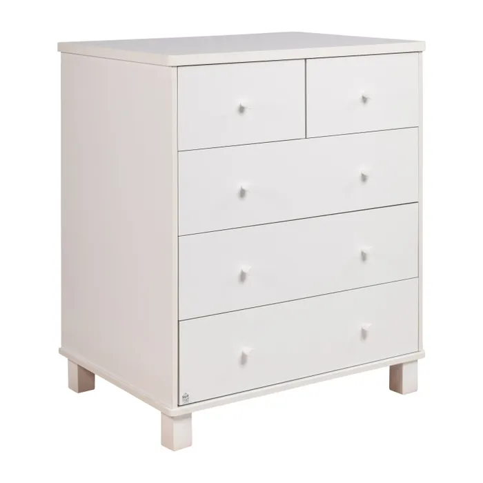 שידה קלאסית עם פינות מעוגלות בפלטה עליונה ובפלטה התחתונה לשמירה לסביבה בטוחה לתינוק וחלוקת מגירות 2 קטנות ו3 גדולות. עם משטח החתלה בעומק 60 ס"מ ורגליים העשויות מעץ מלא חזק ועמיד לשנים. בשידה זאת מותקנות מסילות טלסקופיות איכותיות בעלות כושר נשיאה גובה