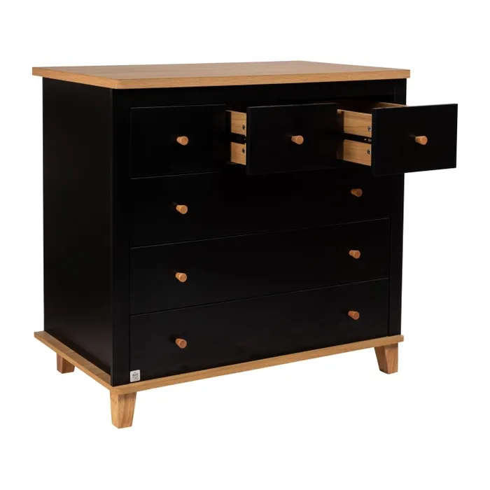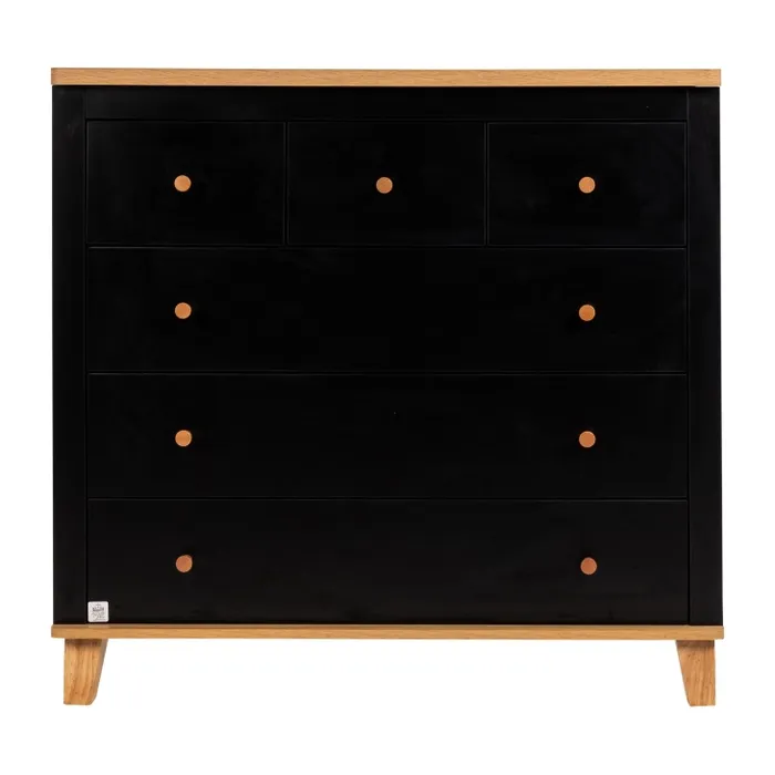 שחר משלבת בין מראה קלאסי ורך עם מודרניות ועכשוויות. הגוון השחור בשילוב צבע עץ טבעי מעניק לה מראה חדיש ומיוחד. השידה מאובזרת ב6 מגירות.שורה עליונה מחולקת ל3 מגירות המאפשרות חלוקה נוחה ותפעול קל ללא צורך בהתרחקות מהשידה בפתיחת המגירות.החלקים הפנימיים של השידה בגימור טבעי הידוע בשמירה על טיב המוצר לשנים.