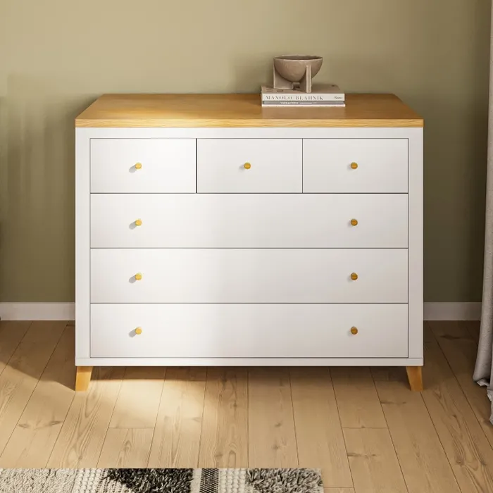 שידה טוקיו מאובזרת ברמה הגבוהה ביותר, מסילות נסתרות טריקה שקטה רגליים מעוצבות עשויות עץ בוק מלא