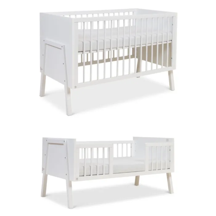 מיטת תינוק 2 ב 1 מעץ בוק מלא+מעבר. המיטה מגיעה עם סולמות מעבר וניתנת לשינוי באופן פשוט וקל, עם עץ בוק אשר מתאים למגוון רחב של שידות. למיטה רגלי עץ בוק מעוצבות, המגביהות אותה ומעניקות לה מראה מרשים ודומיננטי.