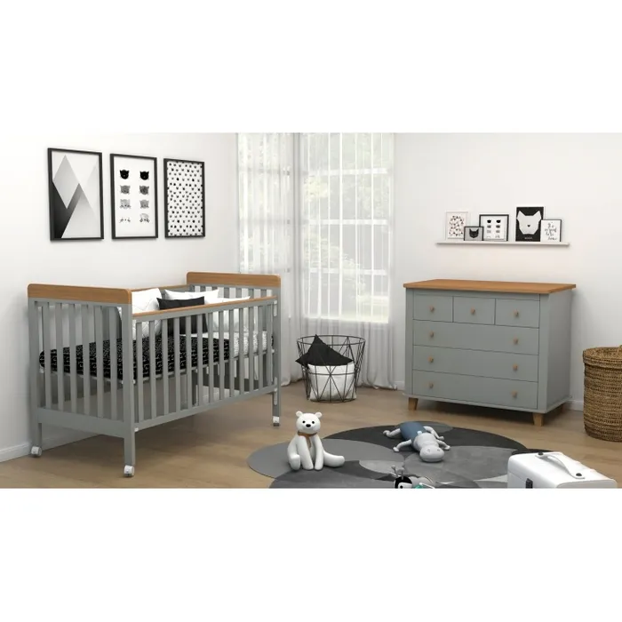 צבע: אפור שילוב טבעי חומר גלם: MDF כולל מגירותמיטת תינוק דגם ארבל