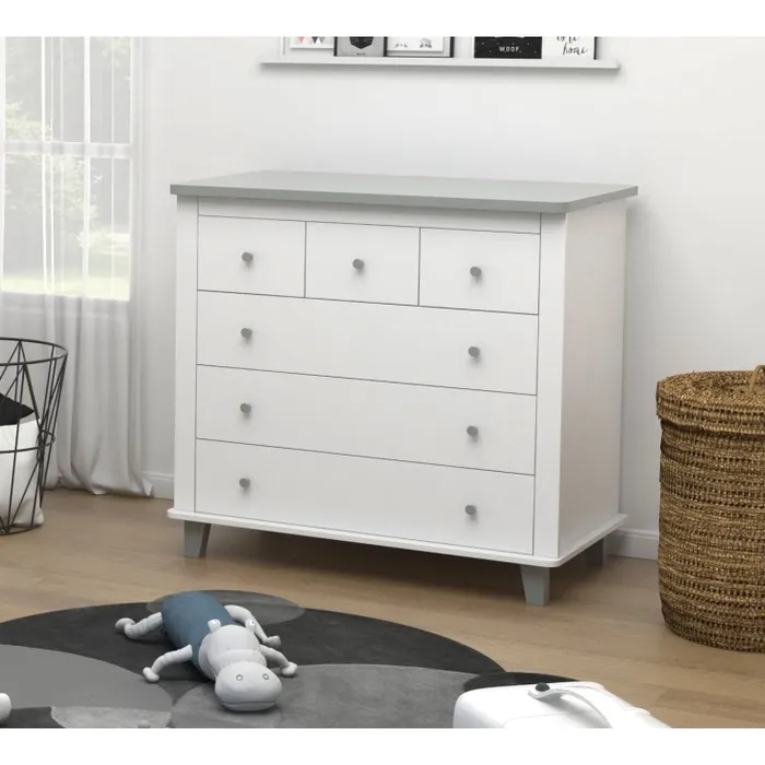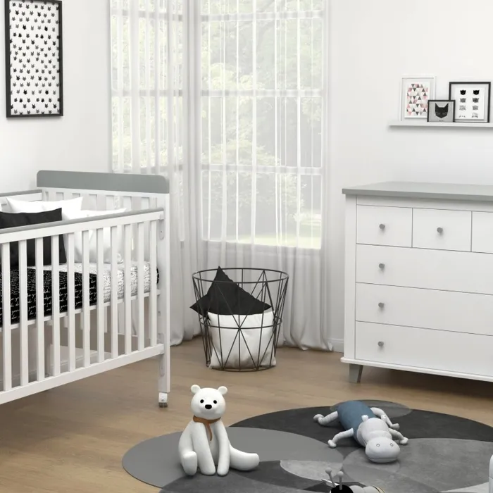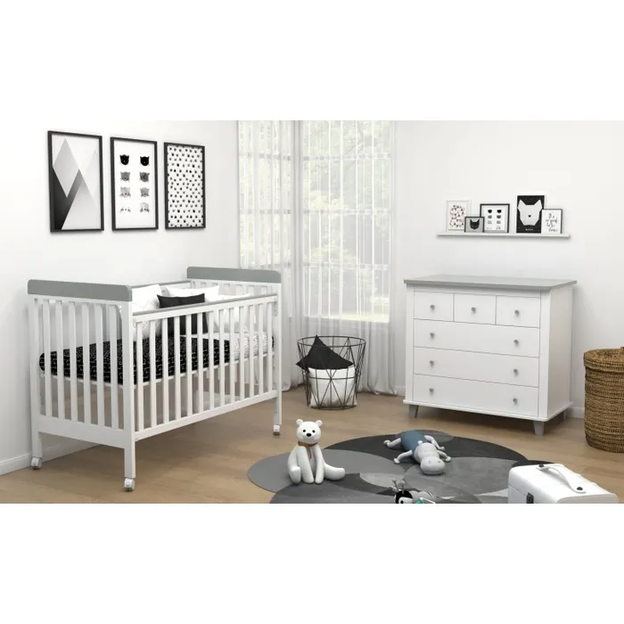 צבע: לבן שילוב אפור חומר גלם: MDF כולל מגירות מיטת תינוק דגם ארבל