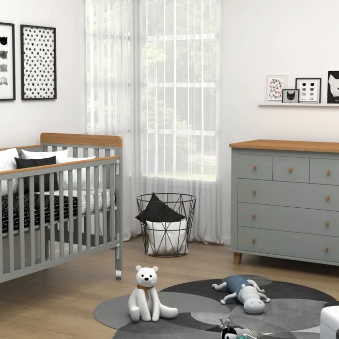 צבע: אפור שילוב טבעי חומר גלם: MDF כולל מגירותמיטת תינוק דגם ארבל