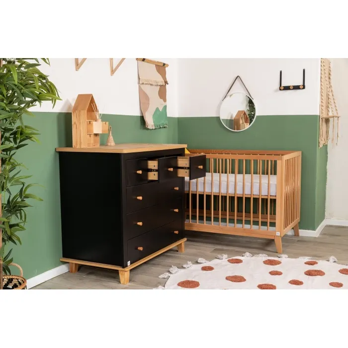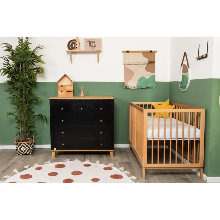 השידה המהממת משלבת גוון שחוק ועץ טבעי, בעלת קווים מודרניים וחלוקת מגירות פרקטית – 3 קטנות ו-3 גדולות. מיטת תינוק וויני מציעה מראה עכשווי ומרשים, משדרגת כל חלל ומכניסה עיצוב שיקי. המיטה מגיעה בגוון עץ בוק, עם בסיס במה עץ בזווית המגביהות אותה ומעניקות לה מראה קליל. בסיס המיטה מתכוונן ל- 4 מצבי גובה וברגי המיטה פנימיים ואינם נראים לעין. שניר בייבי מקפידה על ייצור איכותי ומוקפד, תוך דגש על חומרי גלם איכותיים ובטיחות מעל הכל.