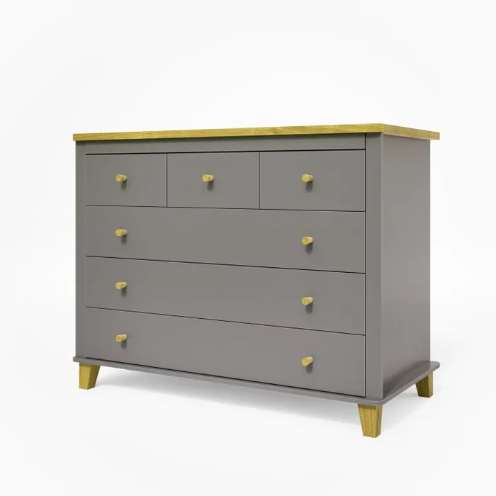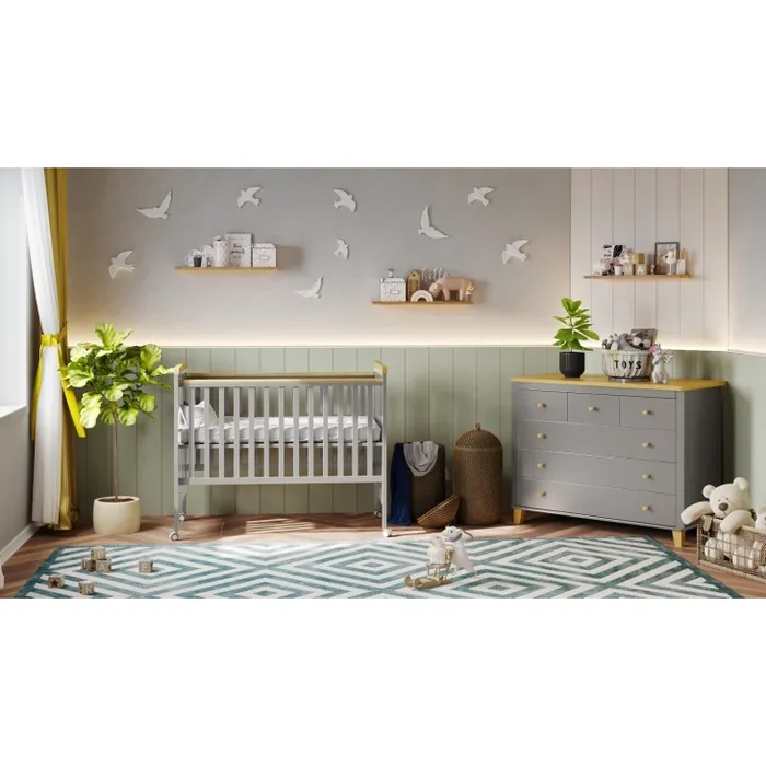 כל מה שחלמתם נמצא בחדר אחד! עיצוב מהמם ושידה סופר פרקטית עם חלוקת מגירות מושלמת – 3 מגירות קטנות ותוספת 3 מגירות גדולות. בשידה מותקנות מסילות טלסקופיות איכותיות בעלות כושר נשיאה גבוה ופינה מעוגלת בפלטה עליונה להחתלה בטוחה ושמירה על סביבה בטוחה לתינוק. המיטה מגיעה בשילוב גוון עץ טבעי בסולמות המיטה (בלעדי בשניר בייבי!).