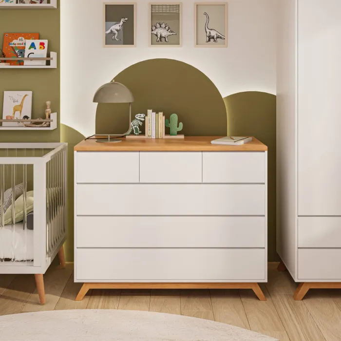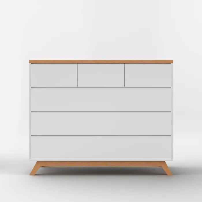 שידת מקאו משלבת פונקציונאיות גבוהה יחד עם גוונים מהממים של לבן ועץ טבעי. היא מגיעה בחלוקה של 3 מגירות קטנות ו- 3 גדולות. והמסילות? כמובן נסתרות עם טריקה שקטה.