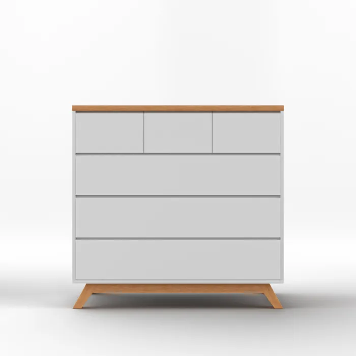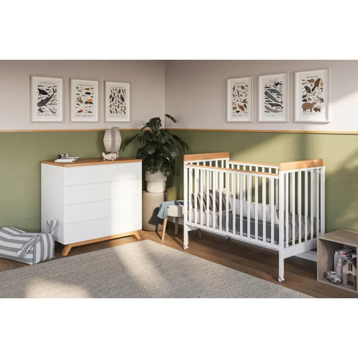 חדר השינה המהמם מגיע בעיצוב יוצא דופן, בשילוב איכות גבוהה ללא פשרות השידה מגיעה עם פינה מעוגלת בפלטה עליונה להחתלה בטוחה, ופינה מעוגלת פלטה תחתונה לשמירה על סביבה בטוחה לתינוק. עם חלוקת מגירות פרקטית 3 מגירות קטנות ותוספת 3 מגירות גדולות ומסילות טלסקופיות איכותיות בעלות כושר נשיאה גבוה.