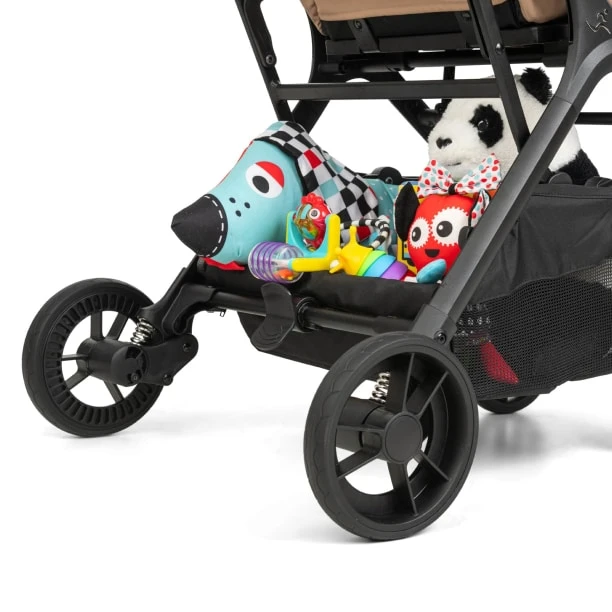 שכיבה המתאימה מלידה, הצללה מלאה, בולמי זעזועים בכל הגלגלים, סל תחתון גדול במיוחד.