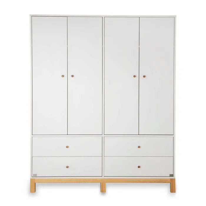 ארון גלאם 160 ס"מ, מעוצב בסגנון מודרני מינימליסטי . שילוב רגלי העץ מעניק לחדר אווירה חמימה, רכה ונעימה. חלוקת הארון: 4 דלתות: פונקציונאלית, ומאפשרת אחסון רב ופשוט. אספקה החל מסוף יולי צירי הדלתות של הארון מגיעים עם מנגנון של טריקה שקטה, השומרים על בטיחות התינוקות והילדים.