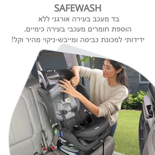 בדי כסא הבטיחות SAFEWASH-הם מעכבי בעירה באופן טבעי ללא תוספת כימיקלים FR ובטוחים לכביסה וייבוש במכונה בלי לאבד את תכונת עיכוב הבעירה בבד המושב.