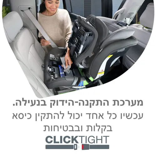 מנגנון ClickTight® המהפכני שבעזרתו מרכיבים את כסא הבטיחות ברכב ב-3 שלבים פשוטים: פתיחה, העברת החגורה וסגירה, הופך את התקנת הכסא לפשוט ביותר!