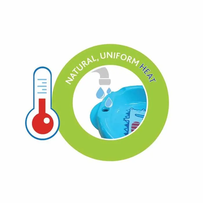 צלחת שומרת חום עם מיכל מים חמים המשולב בתחתית הצלחת, כך חום המזון נשמר אחיד למשך כל זמן הארוחה וילדך יוכל לאכול בנחת ובלי למהר.