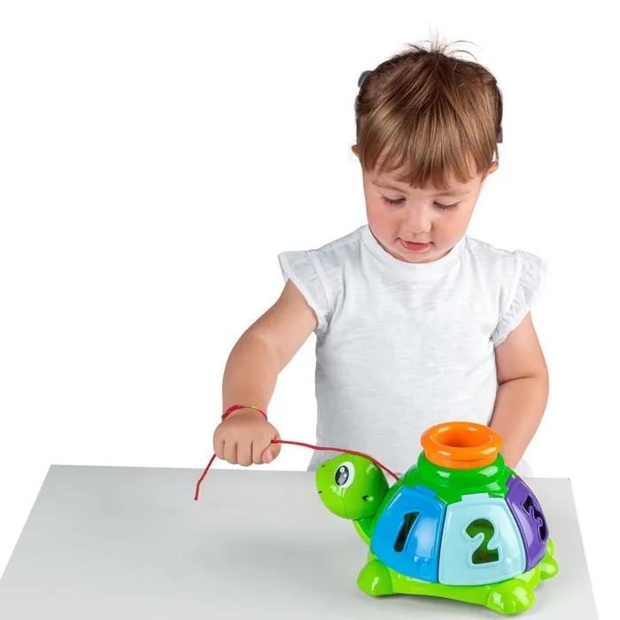 צעצוע גרירה צב אלקטרוני 2 ב-1: משוך ומיין צורות בליווי מנגינות ואפקט הפתעה!