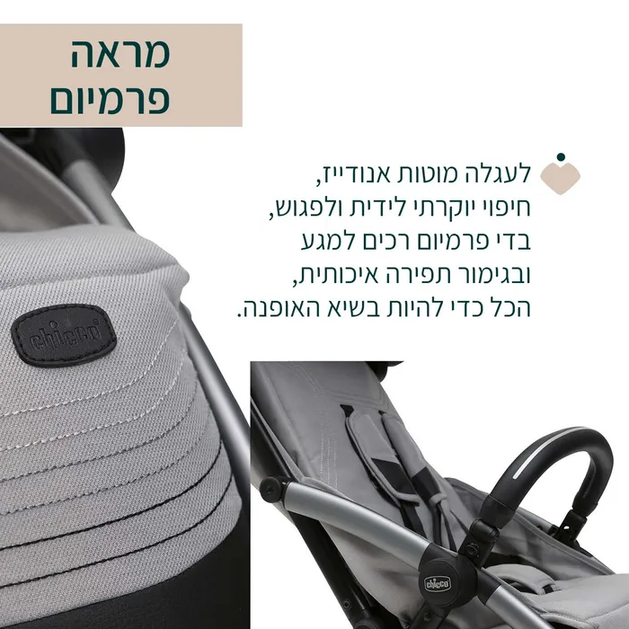 מראה ייחודי – גודי אקס פלוס זוכה לבלוט בשל עיצוב אייקוני מלא בסטייל, לעגלה מוטות אנודייז, חיפוי יוקרתי לידית ולפגוש, ותוספות בדי פרמיום רכים למגע בגימור תפירה איכותית.