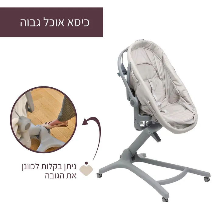 - מצב כיסא גבוה 6-36 חודשים ועד משקל 15 ק”ג – מיועד לילד מגיל 6 חודשים היכול לשבת בכוחות עצמו