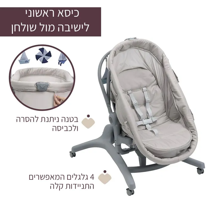 - מצב עריסה הניתנת להסרה מהמסגרת 0-6 חודשים ועד משקל 9 ק”ג – מתאים לילד מגיל לידה ועד שהילד מסוגל לשבת בכוחות עצמו