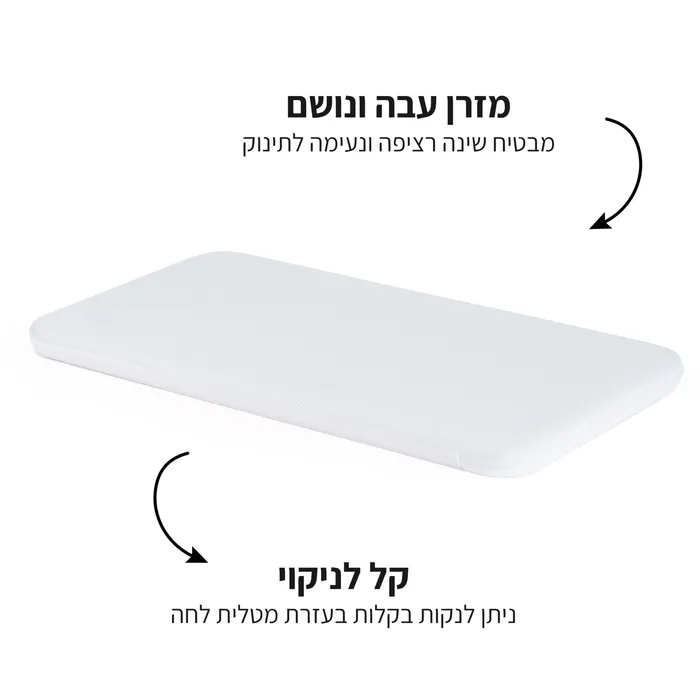 - מזרן נוח – העריסה כוללת מזרן נוח ומאוורר, בעל לוח קשיח המבטיח שינה רציפה ונעימה לתינוק. ניתן לנקות את כיסוי המזרן בקלות בעזרת מטלית לחה.