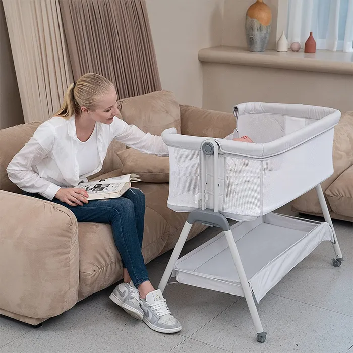 - ניידות – העריסה מצוידת ב-4 גלגלים המספקים תנועה חלקה, הם הניתנים לנעילה ומאפשרים יציבות, בטיחות וניידות קלה ברחבי הבית.