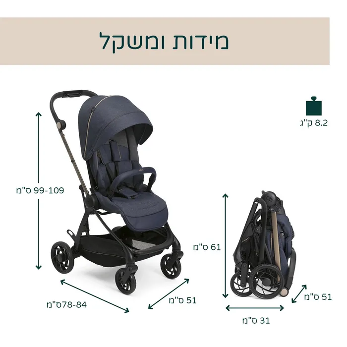 בנוסף להיותה פרקטית, היא מתבלטת הודות לחומרי פרימיום כמו: מוטות אנודייז בצבעים מעודנים, גימורים ברמה גבוהה ובדים איכותיים.משענת גב מתכווננת - המשענת מתכווננת לשלושה מצבי גובה, ומותאמת להתפתחות ולצמיחה של התינוק, כוללת תוספת מקסימלית של 11 ס”מ עם רצועות ייעודיות להתאמת הגובה בגב המשענת.