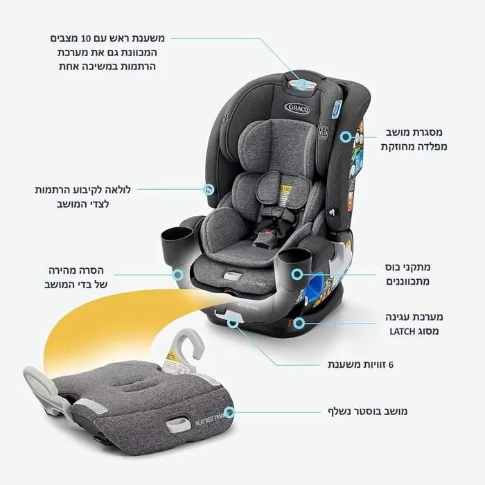 כיסא בטיחות המיועד לתינוק מלידה במשקל 1.8 ק"ג ועד למשקל של 54 ק"ג. (גיל 10)