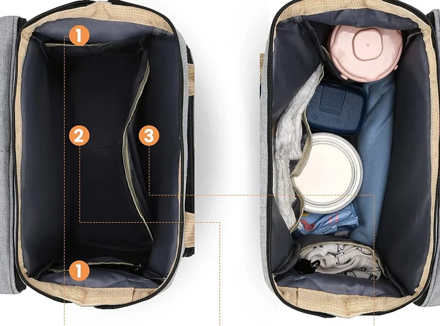 התיק מסוגל להכיל את כל רשימת הציוד שאתם צריכים לקחת איתכם כשיוצאים מהבית כדי לטפל ביקרים מכל, ומגיע עם משטח החתלה אנטי בקטריאלי נשלף וכביס. כל זאת בצורה הכי אופנתית ופרקטית שראינו.