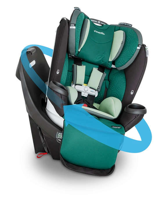 כסא בטיחות מסתובב מלידה ועד 54 קג כולל בדים ללא כימיקלים והארכת רגלים דגם Revolve360 Extend Go Green