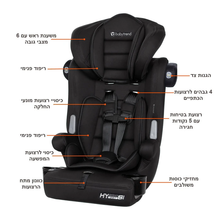 חדש בישראל! מושב בטיחות 3 ב 1 ™Hybrid מבית ®Baby Trend (שחור)