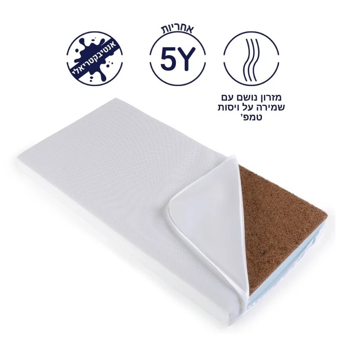 - שימוש מותאם לגיל התינוק – יש להניח את התינוק על הצד הקשה (קוקוס) למשך כ- 9 חודשים , ואחר כך להפוך את המזרון לצד הרך (ספוג).