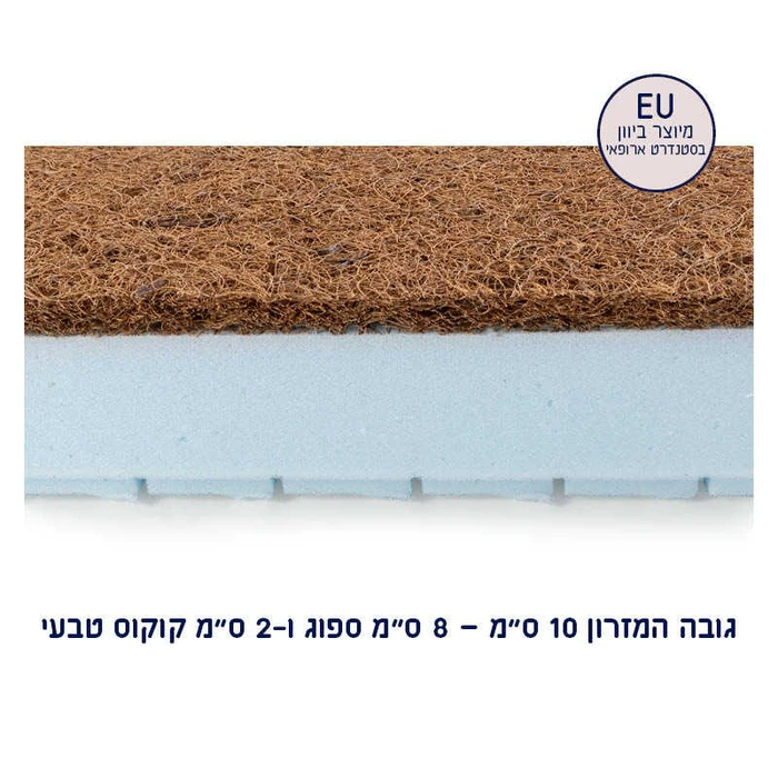 - גובהו הכולל של המזרון 10 ס”מ – 8 ס”מ ספוג ו- 2 ס”מ קוקוס טבעי