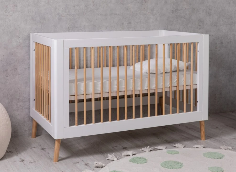 מיטת תינוק דגם קימברלי עשויה מעץ מלא. מעוצבת בקווים אחידים ובשילוב צבעים של לבן וטבעי. למיטה 4 מצבי גובה לתחתית להנאת המשתמש ולבטיחות מקסימלית.