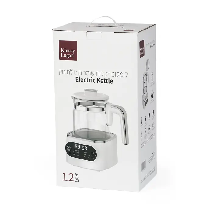 הקומקום של Kinsey Logan תוכנן תוך מחשבה על בריאות התינוק ונוחות ההורים הוא עשוי מחומרים איכותיים ובטוחים לתינוק – זכוכית בורוסיליקט, מסך מגע נוח, ותאורת לילה רכה המאפשרת תפעול נוח גם בלילה.