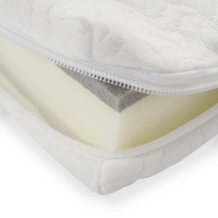 רכות ונוחותהמזרן עוטף ברכות את גוף התינוק בשילוב תמיכה אופטימלית לכל אזורי הגוףאיכות ועמידותהמזרן עשוי מחומרי פרימיום איכותיים, העמידים לאורך זמן ושומרים על תכונותיהם. למזרן כיסוי בד ג'קארד (אריגה רב שכבתית) עמיד ונעים למגע, עם אפקט תלת-ממדי המעניק לו מראה עשיר יוקרתי ואקסקלוסיבי.התאמה לשלבי ההתפתחותשימוש דו-צידי המותאם לגיל התינוק והפעוט כאשר הצד הקשיח מומלץ לשימוש עד גיל שנה והצד הרך עם שכבת הויסקו מומלץ לפעוטות מגיל שנה ומעלה לנוחות ותמיכה מוגברת.שכבת ויסקו לשינה איכותיתשכבת הוויסקו (ספוג זיכרון), שפותחה במקור על ידי נאס"א, מתאימה את עצמה לקימורי הגוף ותנוחת השינה, מפחיתה לחצים ומפזרת את המשקל בצורה שווה. בזכות התמיכה האחידה בכל חלקי הגוף ושיפור זרימת הדם, המזרן מעניק שינה רציפה, נוחה ואיכותית יותר.אוורור רציף ומניעת חימום יתרהמזרן בנוי כך שיאפשר זרימת אוויר קבועה בין השכבות, מה ששומר על טמפרטורת גוף מאוזנת ומונע הצטברות חום ולחות סביב התינוק.סביבת שינה בריאההאוורור מסייע בצמצום הצטברות אבק, קרדית ופטריות, ובכך מפחית סיכוי לאלרגיות ובעיות נשימה ומעניק לתינוק שינה רגועה ובריאה יותר.